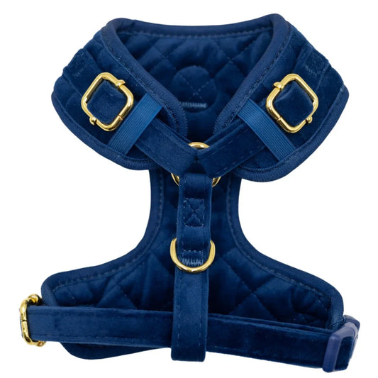 Sametový beztlakový postroj pro psa – tmavě modrý