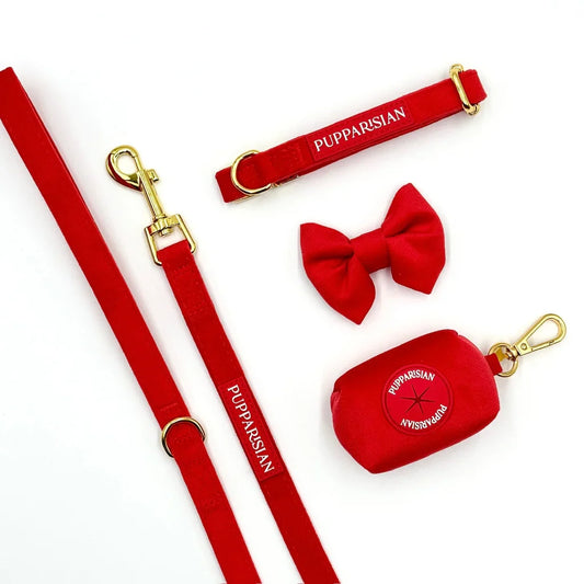 Sametové městské vodítko pro psa – červené 190 cm