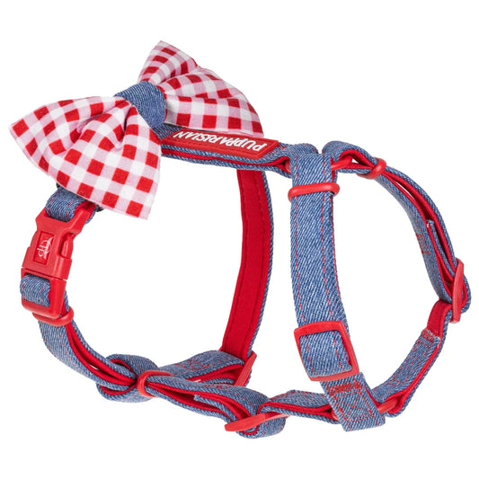 Postroj typu guard pro psa s mašlí – jeansový
