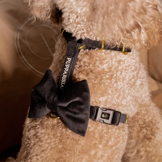 Sametový postroj typu guard pro psa s mašlí 2.0 – černý