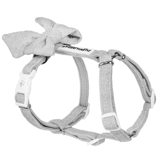 Postroj typu guard pro psa s mašlí – stříbrný lesklý