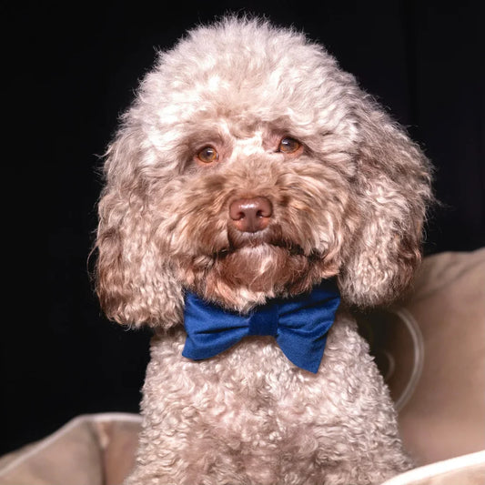 Sametový obojek s motýlkem pro psa – tmavě modrý